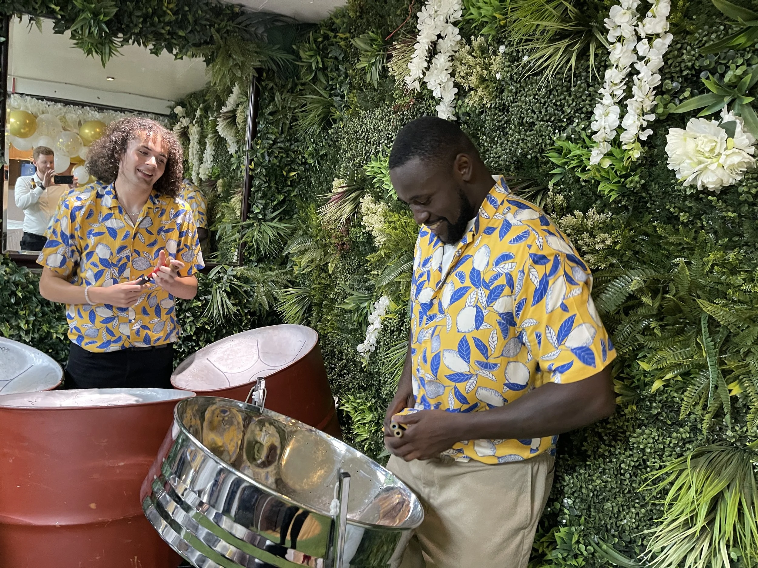 BackYardPan is a lively and exceptionally skilled steel band hailing from North-West London, with over 10 years of rich experience in the music industry. We love performing at a variety of events, including weddings, school celebrations, and co-orprate parties. Our diverse musical repertoire features Soca, Calypso, and popular club hits that appeal to a wide audience. Additionally, we love interacting with our listeners and are happy to accommodate song requests to make each performance truly special!
